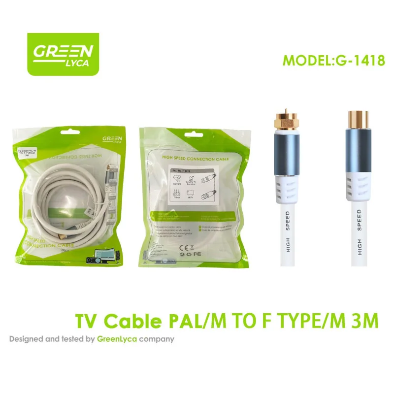 Equipado con un conector PAL macho estándar y un conector Tipo F macho con rosca. Permite la interconexión directa entre tomas de pared, decodificadores y receptores de satélite.