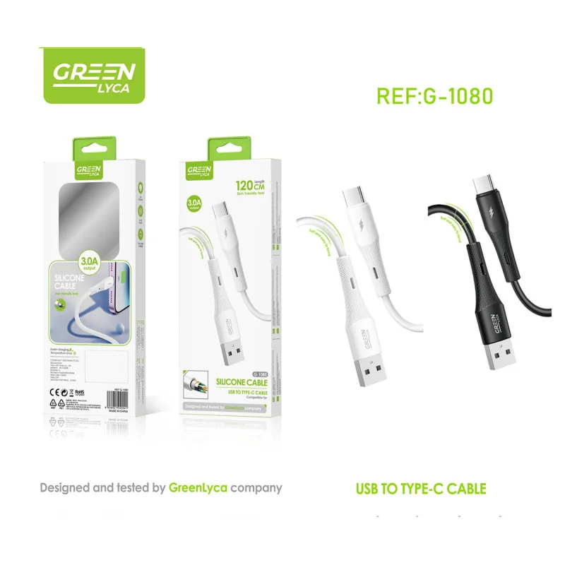 El cable de silicona Green Lyca G-1080 es un accesorio indispensable que equilibra resistencia física y eficiencia de carga. Su diseño ergonómico y materiales de alta calidad garantizan una larga durabilidad en cualquier entorno profesional.