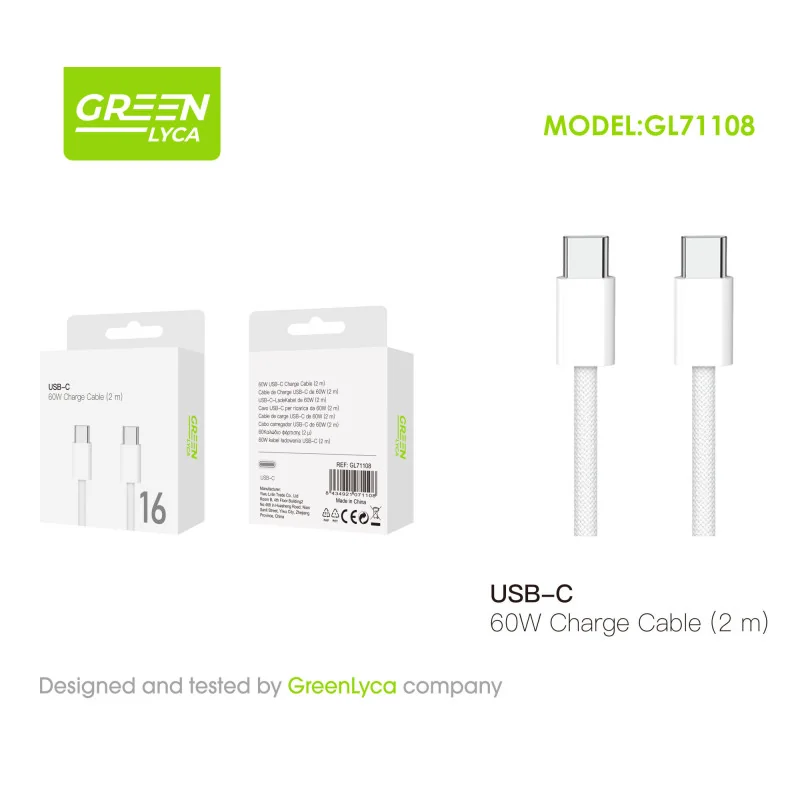 Este cable USB-C a USB-C de 60W constituye un componente esencial para cualquier catálogo de accesorios móviles. Su longitud de 2 metros y potencia de carga lo convierten en una opción fiable para el mercado B2B.