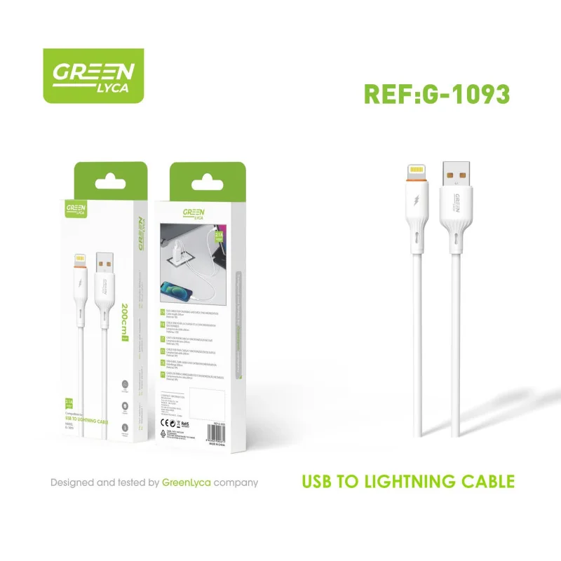 Equipado con un conector USB tipo A y un terminal Lightning, es compatible con una amplia gama de dispositivos del ecosistema Apple. Facilita la conexión a cargadores de pared, puertos de ordenador y baterías externas.