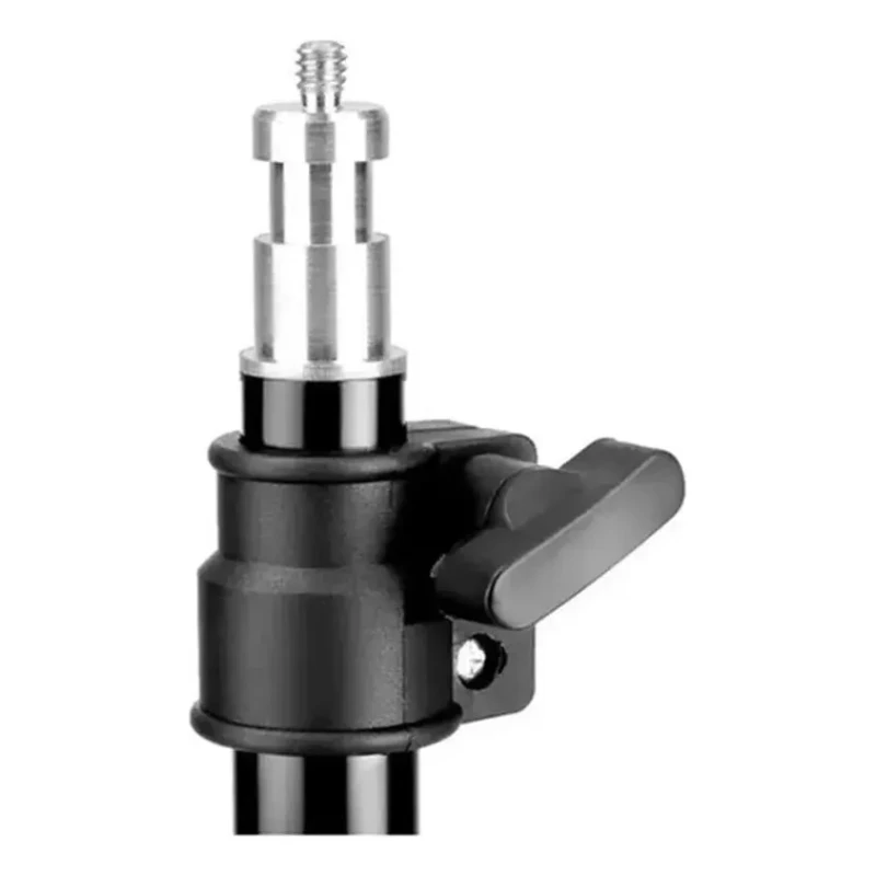 El trípode dispone de una punta de espita estándar con rosca de 1/4 de pulgada. Es compatible con soportes para teléfono móvil, aros de luz LED, flashes de estudio y cámaras compactas que utilicen este paso de rosca universal.