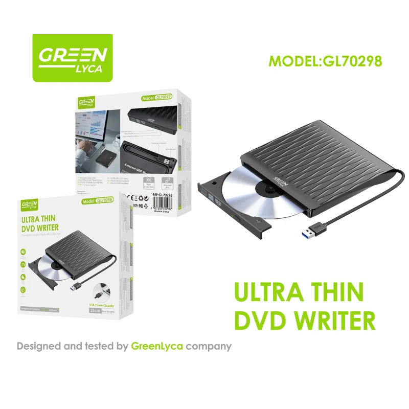 Que vous ayez besoin de copier vos films préférés, de graver de la musique ou de stocker facilement de grandes quantités de données, le graveur DVD/CD externe ultra-fin est le partenaire idéal. Profitez de son design élégant et de ses fonctionnalités avancées pour optimiser votre productivité et vos loisirs. Ajoutez dès aujourd'hui cet outil performant à votre équipement technologique !