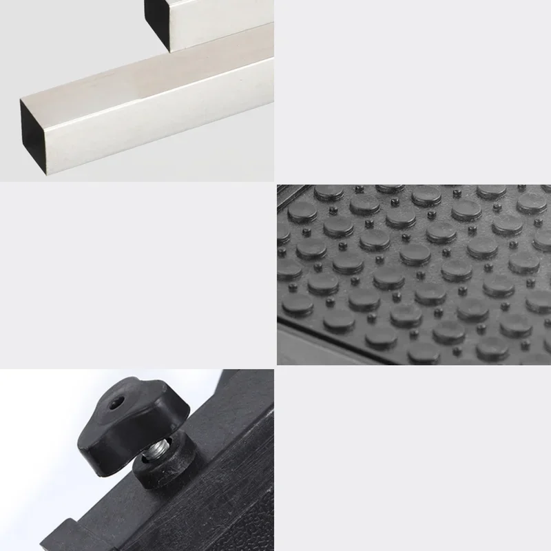 Les barres en acier inoxydable se glissent dans les coins en plastique jusqu'à l'obtention de la longueur souhaitée. Une fois ajustées, elles sont solidement verrouillées en place en tournant les vis de blocage manuelles situées en bas.